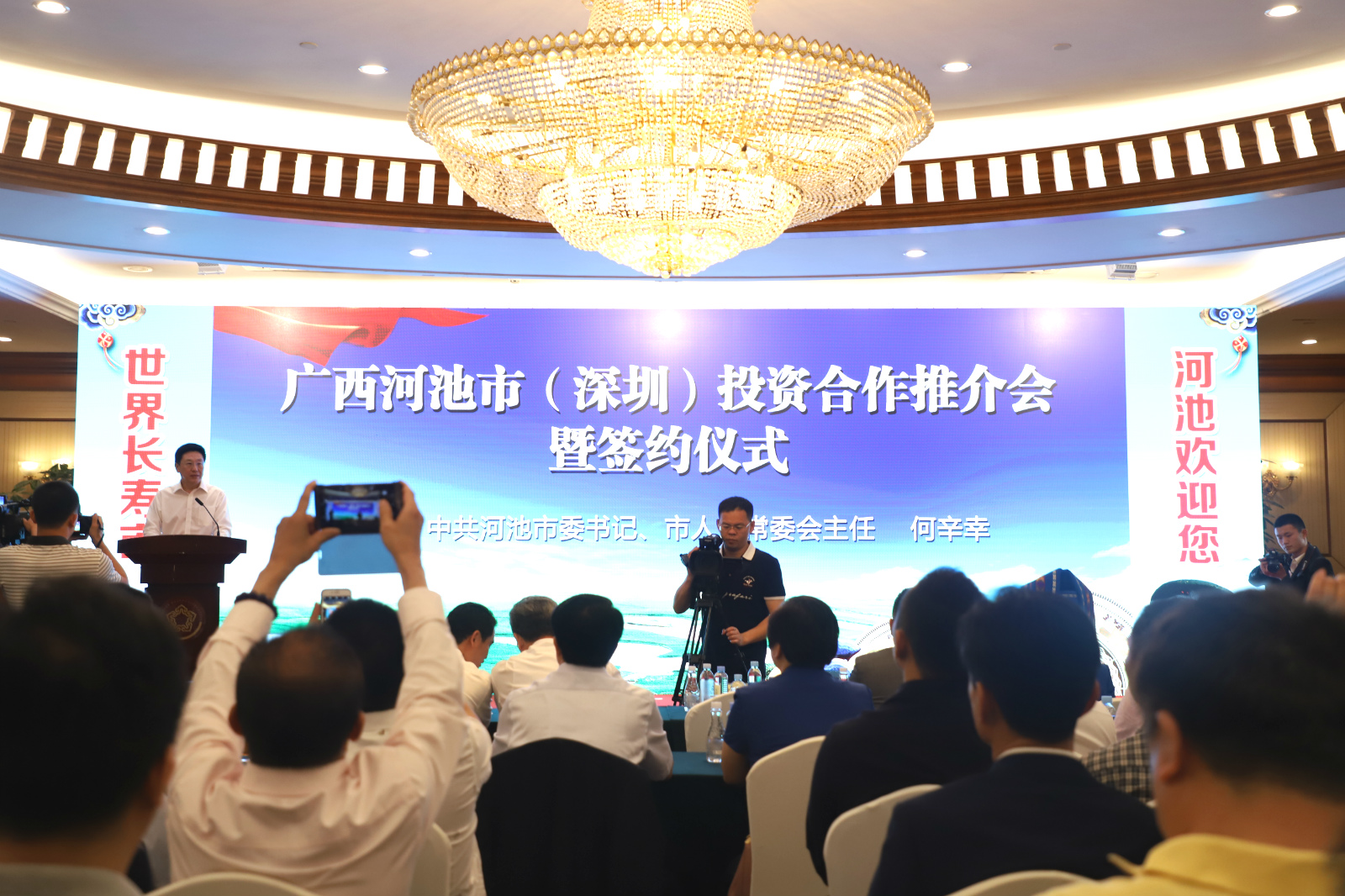 The investment cooperation promotion meeting and signing ceremony was held in Shenzhen Wuzhou Hotel, and 68 companies were invited to participate. Under the witness of the leaders of Hechi Municipal Committee, Municipal Government and Shenzhen Municipal Government, vice-president Wang Xiaoqin and subprefect of the People's Government of Bama County, Huang Jun, signed the contract. The signing opened the prelude to the cooperation between China Water Affairs Group and Bama water industry, laying a good foundation for deepening friendship, deepening cooperation and mutual benefit.