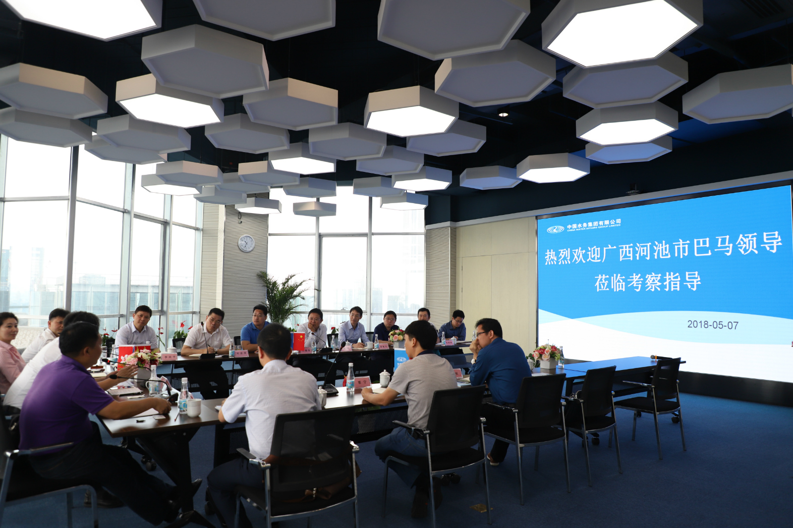 5 月 16 日,河南郟縣住建局自來水公司總經理李永生一行 5 人到我司考察,公司常務副總經理李興平接待了考察團一行。 座談會上,李興平常務副總經理向考察團介紹了中國水務集團和...2018-05-23MORE → -