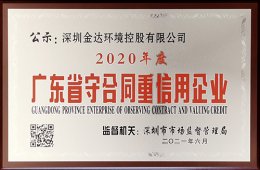 喜訊!金達環境榮獲廣東省“守合同重信用” 企業稱號
