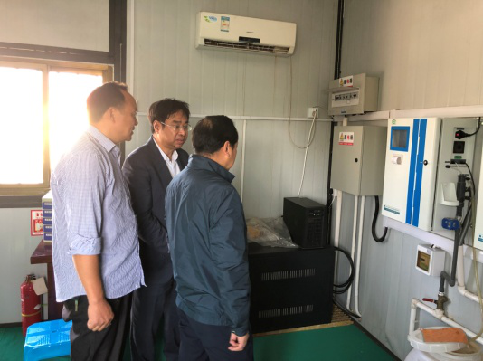 董衛副主席一行參觀了污水廠廠容廠貌、在線檢測設備、高密度沉池、中控室等,了解了污水廠運營管理情況。邯鄲片區總經理楊虎生匯報了污水廠整體運行、生產工藝、出水水質等情況。