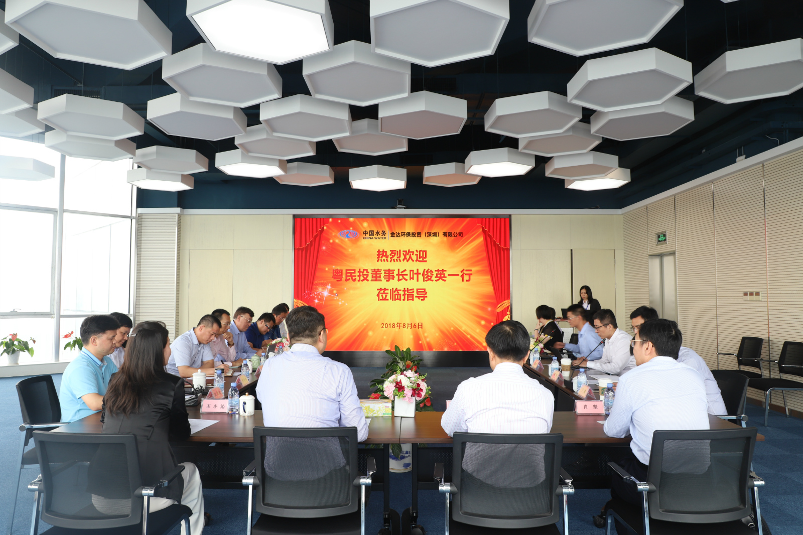 8月6日,粵民投董事長葉俊英、總經理肖堅、高騰控股總裁丁靚等一行5人蒞臨金達環保考察,受到公司董事長李中、副董事長王小沁、總經理黃偉才等的熱情歡迎。