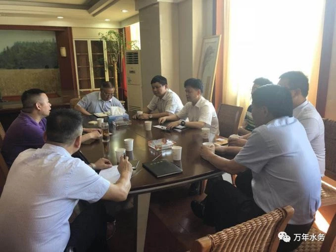 8月29日上午,中國水務集團副總經理、金達環保總經理黃偉才一行,拜訪了萬年縣委副書記、縣長吳樹儉。萬年縣政府辦、縣水務局負責人,金達環保常務副總經理李興平、運營管理部總經理楊云,萬年銀龍、萬年中水負責人參加活動。
