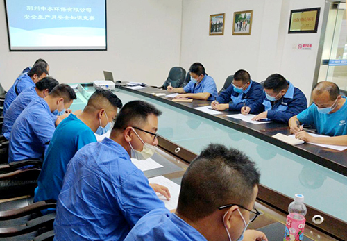 ↑ 金達環境旗下的荊州中水環保有限公司開展安全生產知識學習、知識競賽和應急演練。