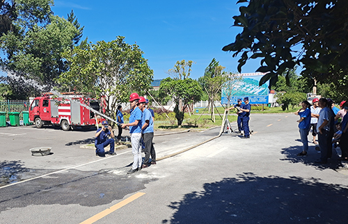 ↑ 金達環境旗下的萬年縣中水環保有限公司邀請萬年縣消防大隊人員到廠區開展消防安全知識培訓和消防演練實訓。