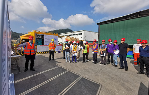 展示會上,大通水務總經理王春雷、副總經理劉漢濤、運營管理部副總經理羅友紅、市場部經理葉果等熱情接待了考察團一行。大通水務在紫外光固化管道修復法運用上有著豐富的經驗和成功實踐的案例。在此次作業展示中,工作人員熟練地將內襯軟管和紫外光車放到了井下并開展修復操作,同時,王春雷總經理等人分步驟向考察團詳細介紹了施工細節,并為考察團解疑答惑。