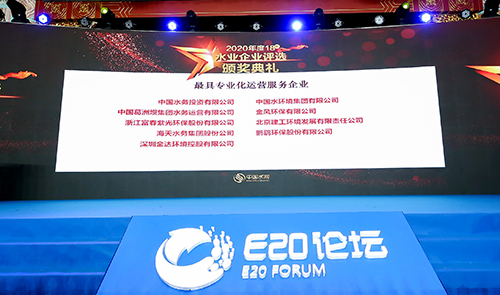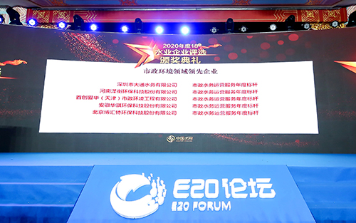 該年度評選是由國內環境產業縱深服務平臺“E20環境平臺”主導主辦,由E20評審團、專家評審團、行研評審團、媒體評審團、網絡評審團共同形成的大評審團,根據企業市場業績、財務狀況、創新能力、新聞關注度、品牌能力、企業家榮譽六大維度綜合評出,在水務行業具有較高的權威性和影響力。